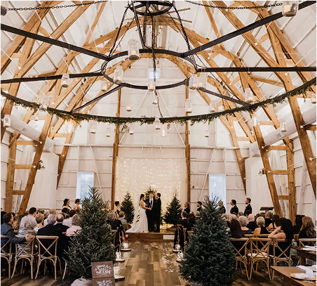 A modern take on the classic countryside barn — blending rustic character with elevated design. With vaulted ceilings, natural light, and versatile space for large or intimate gatherings, the barn is the heart of classic seasonal celebrations.
